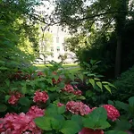 Morgenmad var lækker med vin og ost, rimeligt prissat. Mit værelse var ideelt med komfortabel seng. Hotellets beliggenhed var fed i en stor have. Tæt på centrum, haverne.